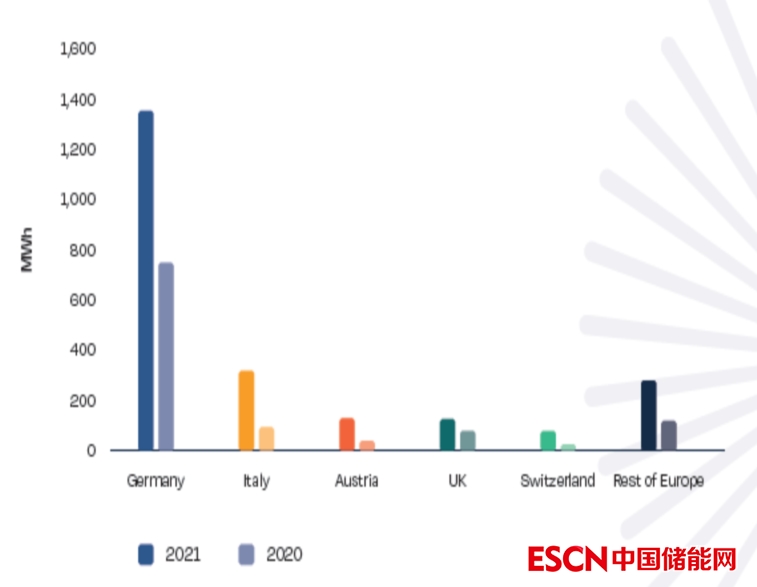 圖2.4 2020-2021年歐洲五大住宅電池儲(chǔ)能市場(chǎng)規(guī)模