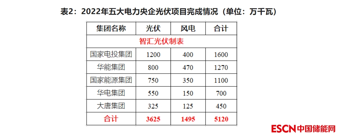表3:五大電力央企獲取的2022年新能源指標規(guī)模(單位:MW)