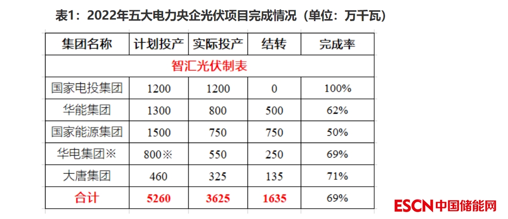 1)2022年除國家電投之外,光伏項目均未完成規(guī)劃的裝機目標,整體完成率約為七成,超過16GW項目結(jié)轉(zhuǎn)到2023年完成。