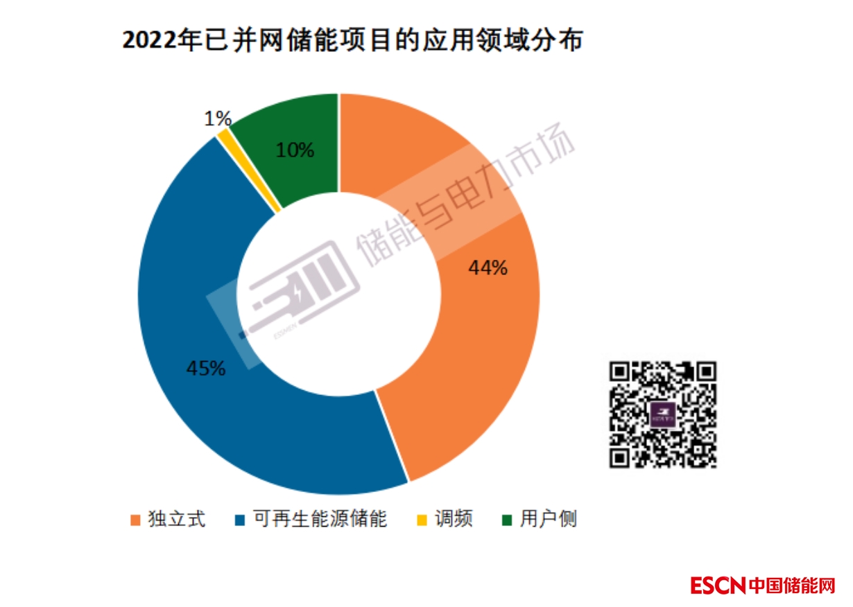 從2022年已并網(wǎng)項(xiàng)目的應(yīng)用領(lǐng)域來(lái)看,可再生能源儲(chǔ)能項(xiàng)目和獨(dú)立式儲(chǔ)能項(xiàng)目貢獻(xiàn)了絕大多數(shù)增量,分別占比達(dá)45%和44%。調(diào)頻儲(chǔ)能項(xiàng)目在2022年明顯降速,僅有8個(gè)項(xiàng)目投運(yùn)。得益于3個(gè)10小時(shí)鉛炭?jī)?chǔ)能項(xiàng)目投運(yùn),用戶(hù)側(cè)儲(chǔ)能項(xiàng)目在容量規(guī)模上大幅提升。