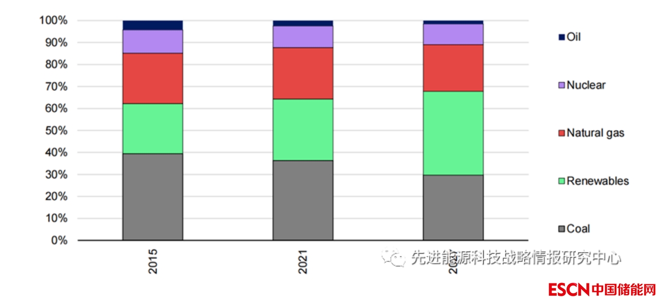圖3 2015年、2021年和2027年全球電力結構發(fā)展趨勢