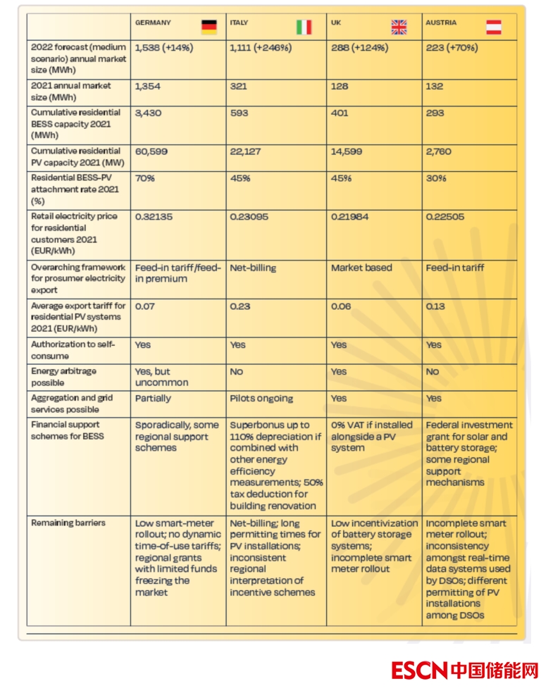 以下介紹2021年歐洲四個(gè)最主要住宅電池儲(chǔ)能市場(chǎng)發(fā)展的背景和趨勢(shì)。