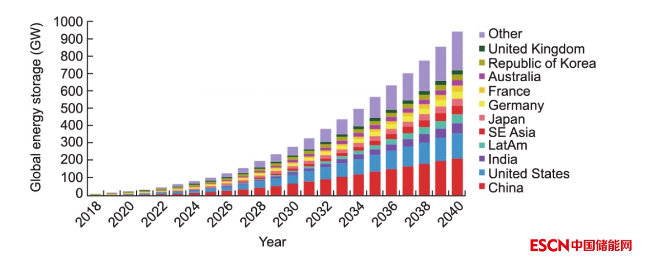 國際能源協(xié)會(International Energy Association)預測,雖然抽水蓄能項目成本高昂,還依賴特定地理條件,但在儲能需求的驅動下,抽水蓄能項目在未來10年內將實現(xiàn)創(chuàng)紀錄增長。針對預計儲能需求,工業(yè)也在大力發(fā)展化學儲能。而其中,鋰離子電池將在發(fā)展中扮演重要角色,比如特斯拉公司的Megapack儲能項目將達到公用事業(yè)規(guī)模。彭博新能源財經(jīng)(Bloomberg New Energy Finance)預測全球儲能(排除抽水蓄能)容量在2030年將達到1 TW·h,是2020年可用容量的20多倍(圖4)。該目標大部分將由鋰離子電池完成,不過新型公用事業(yè)規(guī)模的“液體電池”也在開發(fā)中。但Gravitricity公司首席工程師Miles Franklin認為鋰離子電池儲能方案仍存在缺陷?!颁囯x子電池很適合手機和電動車,但是不適合靜態(tài)、與電網(wǎng)互聯(lián)且不要求高能量密度的設施?!?