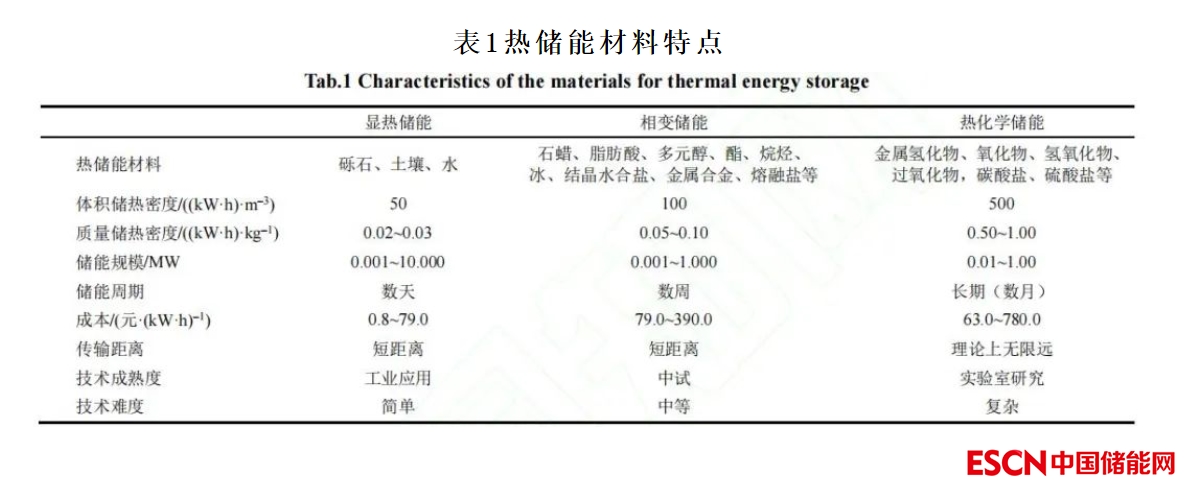 熱儲能是指將熱能儲存在特定的介質(zhì)中,并在需要時轉(zhuǎn)化為電能或其他形式能源的技術(shù)。表1對比了顯熱儲能、相變儲能、熱化學儲能材料的特點。