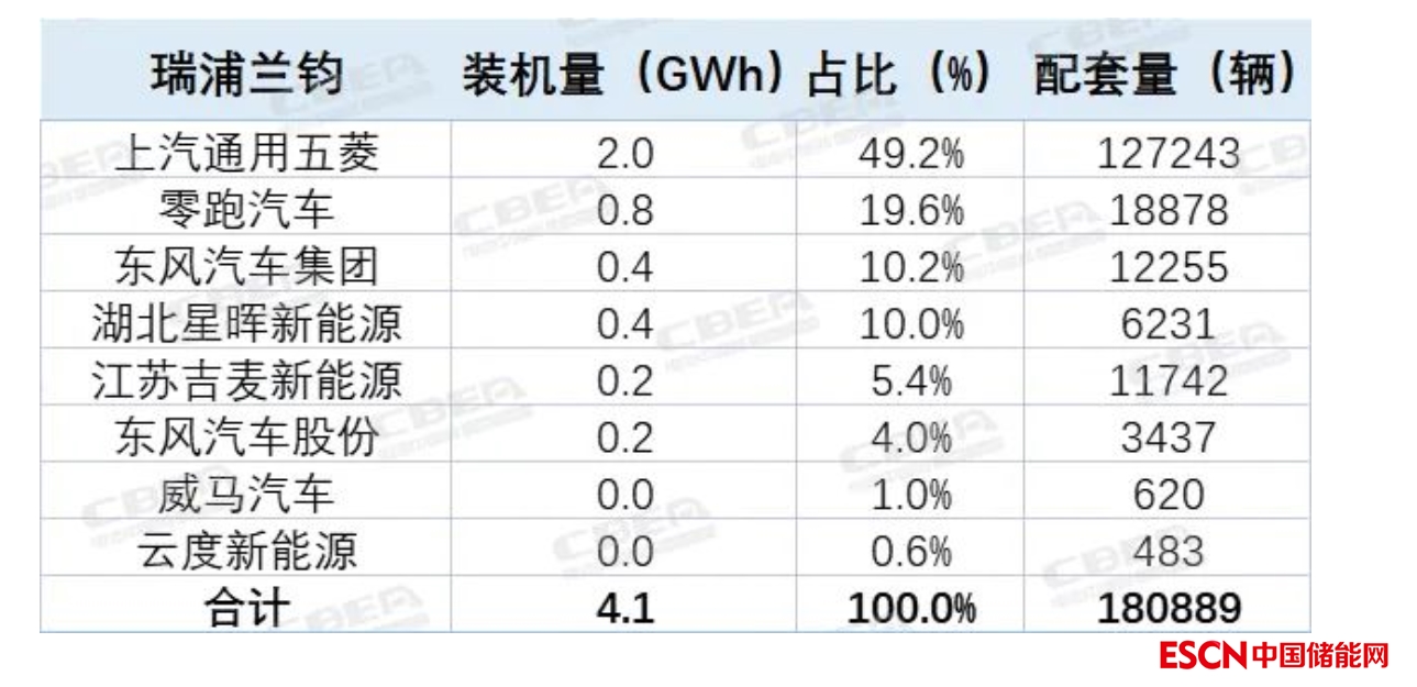 2022年裝機(jī)總量為13.4GWh,市占率為4.4%,裝機(jī)排名第4。