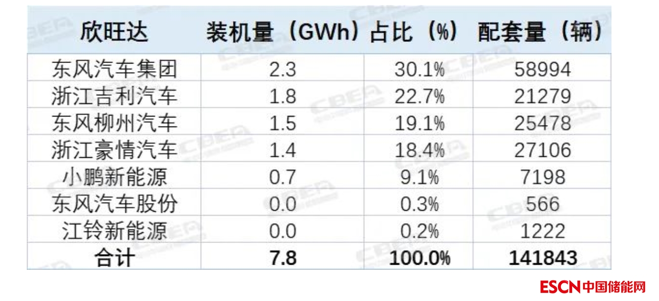 其在乘用車上的電池配套裝機(jī)約為7.8GWh,欣旺達(dá)主要客戶包括東風(fēng)汽車、吉利汽車、東風(fēng)柳州、小鵬汽車等。