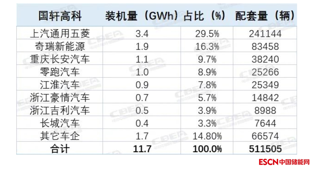 在乘用車市場,國軒高科裝機(jī)量達(dá)11.7GWh,主要配套上汽通用五菱、奇瑞汽車、長安汽車、長安汽車、零跑汽車、江淮汽車、吉利汽車和長城汽車等。