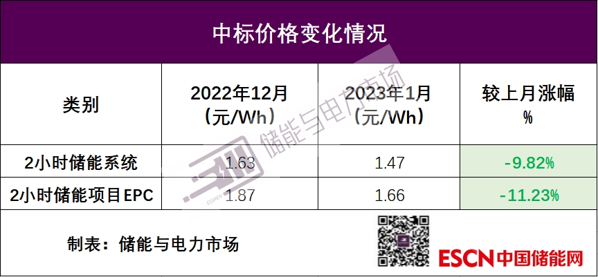 1月整體報價較上個月有明顯下降,2小時儲能系統(tǒng)加權(quán)平均報價環(huán)比下降9.82%;2小時儲能項目EPC加權(quán)平均報價環(huán)比下降11.23%。