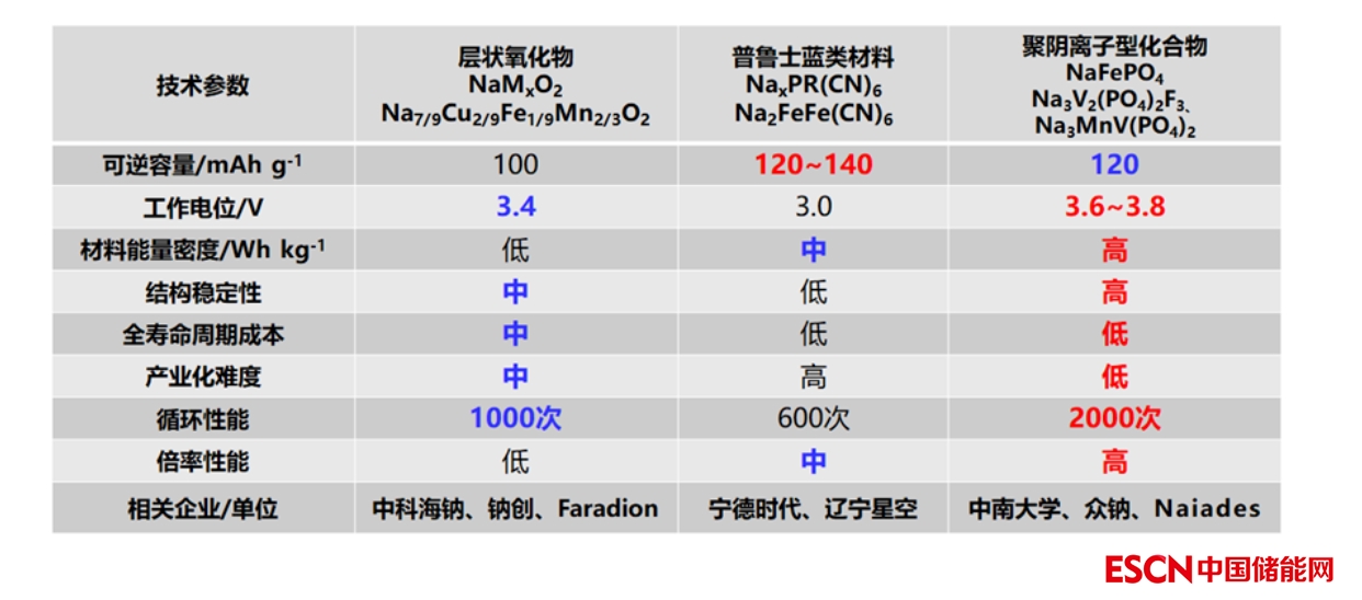 從目前市場上幾個受關(guān)注公司的角度來看,鵬輝能源、眾鈉能源、山東章鼓、鈉創(chuàng)新能源等在聚陰離子材料上布局明顯。普魯士藍(lán)材料布局公司則包括寧德時代、湖南立方、浙江星空鈉電和超鈉新能源。中科海鈉和鈉創(chuàng)新能源采用了層狀氧化物的技術(shù)路徑。