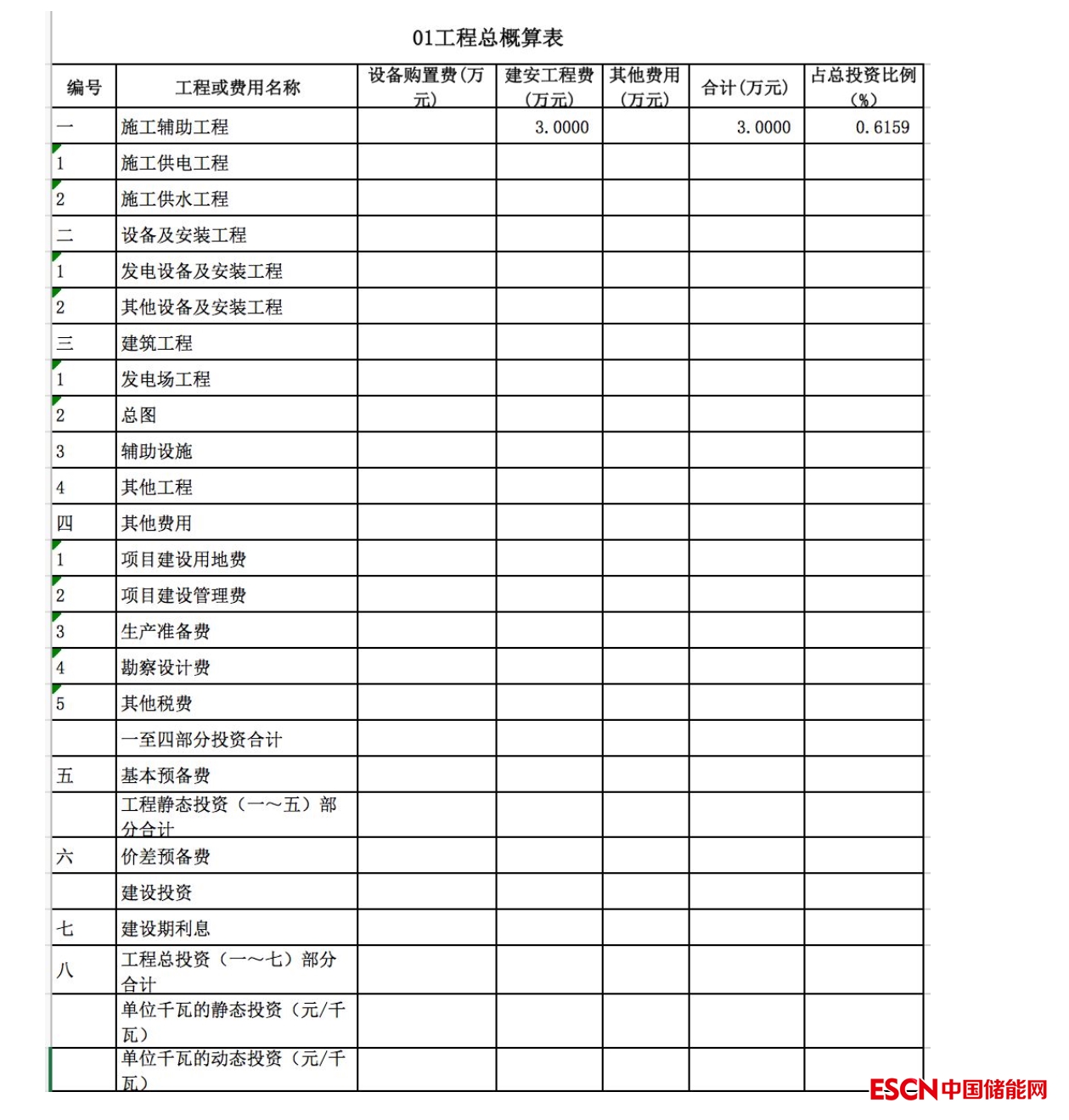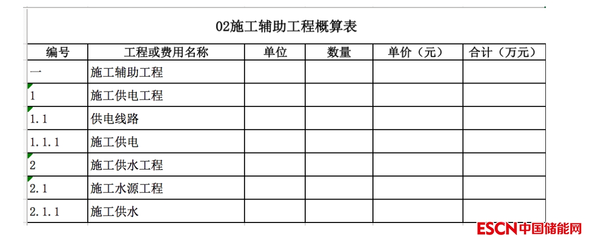 包含:發(fā)電廠(chǎng)區(qū)工程、變電站工程、房屋工程、交通工程等費(fèi)用。如下表所示。