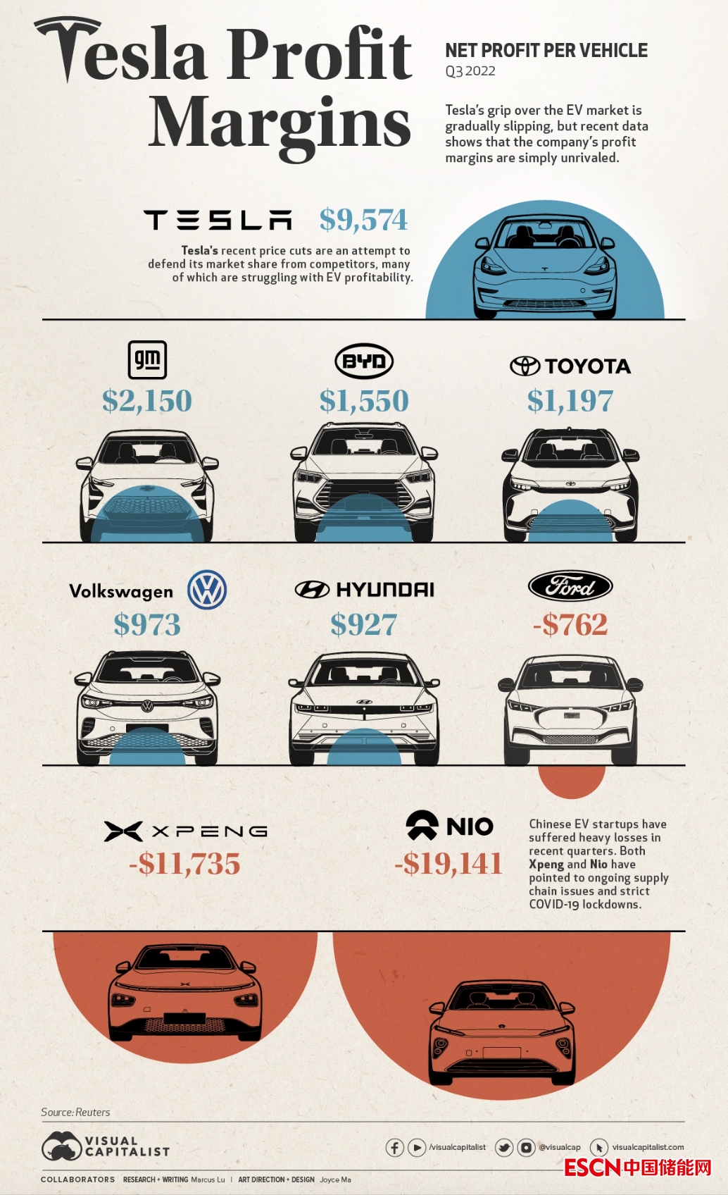 路透社最近匯編的數(shù)據(jù)顯示,特斯拉的毛利潤(rùn)和凈利潤(rùn)都明顯高于競(jìng)爭(zhēng)對(duì)手。特斯拉每賣(mài)一輛車(chē)的凈利潤(rùn)為9574美元,遠(yuǎn)遠(yuǎn)高于其他品牌的汽車(chē)。中國(guó)電動(dòng)汽車(chē)初創(chuàng)公司Xpeng和Nio,兩家公司都報(bào)告了1月份的銷(xiāo)售額同比下降,凈利潤(rùn)微乎其微,這意味著它們不太可能與特斯拉的降價(jià)相競(jìng)爭(zhēng)。