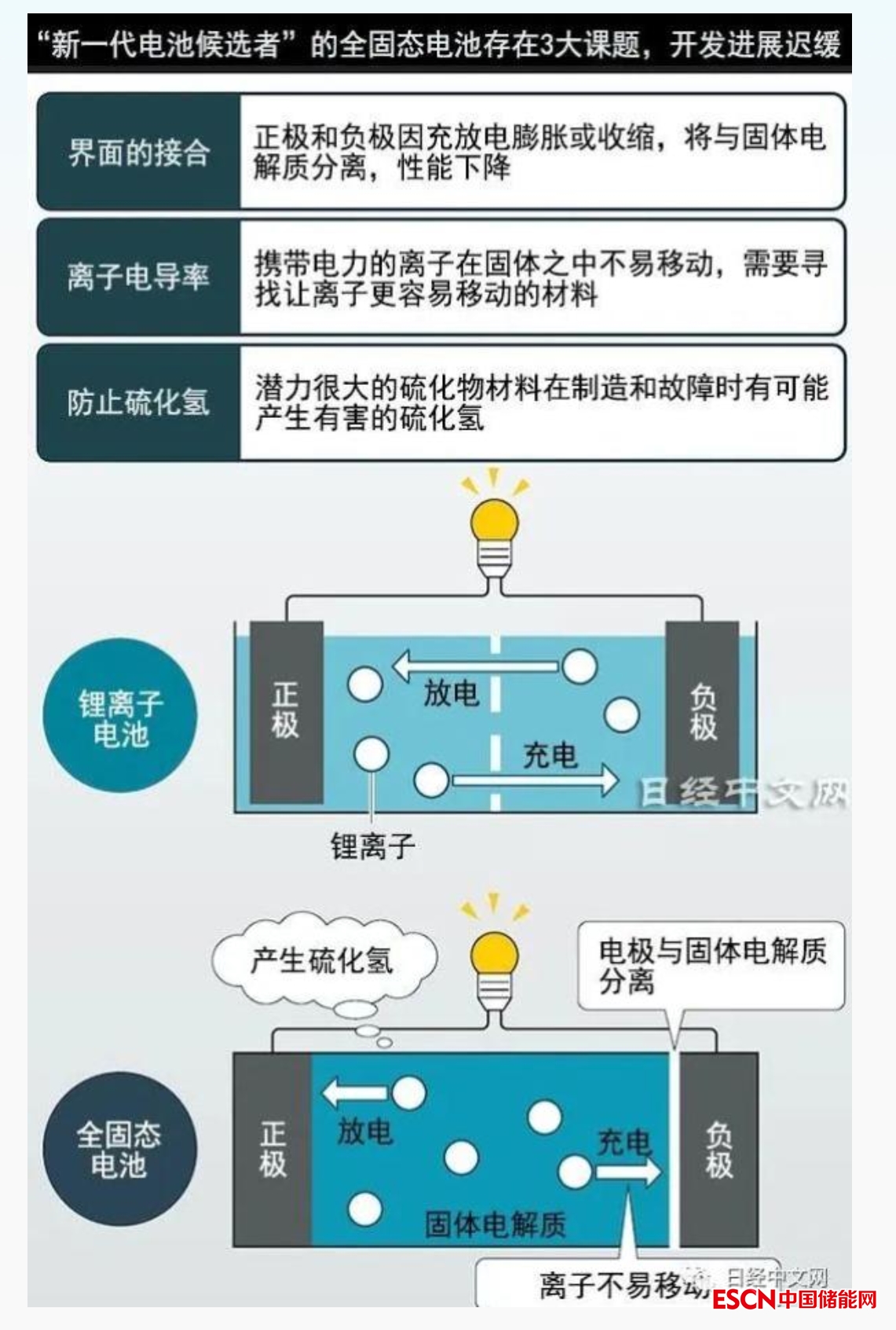 不過,《日經(jīng)中文網(wǎng)》在一篇最新的文章中最新指出,全固態(tài)電池最初被期待在2020年代前半期就搭載于純電動汽車,但開發(fā)速度緩慢,目前看來,其量產(chǎn)仍然需要邁過三道難關(guān)。