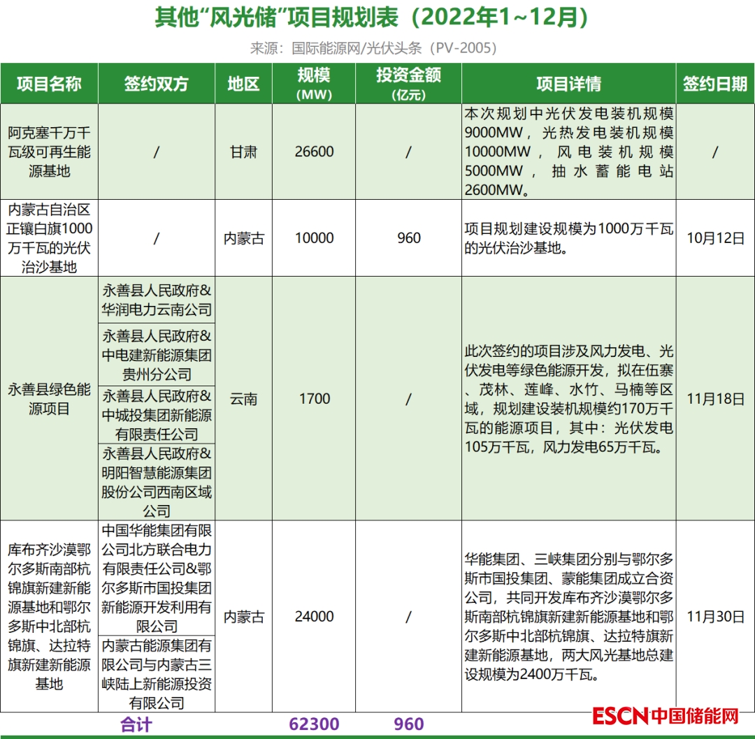 截至2022年12月31日,華能共簽約(規(guī)劃)9個風光儲項目,明確規(guī)模共計6.867GW,有7個項目明確投資金額共計548.36億元。