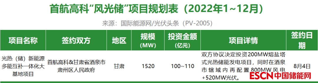 截至2022年12月31日,首航高科共簽約(規(guī)劃)1個風光儲項目,項目規(guī)模為1.52GW,明確投資金額為100~110億元(注:統(tǒng)計時取值110億元)。