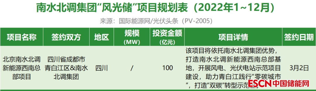 截至2022年12月31日,南水北調(diào)集團共簽約(規(guī)劃)1個風光儲項目,明確投資金額為100億元。