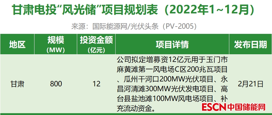截至2022年12月31日,甘肅電投共規(guī)劃1個風光儲項目,項目規(guī)模為800MW,投資金額12億元。