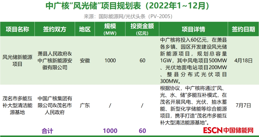 截至2022年12月31日,中廣核共簽約(規(guī)劃)2個風光儲項目,其中已明確項目規(guī)模為1GW,有1個項目明確投資金額60億元。