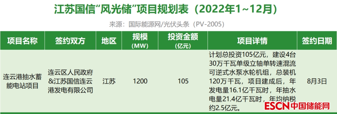 截至2022年12月31日,江蘇國信共簽約(規(guī)劃)1個風光儲項目,項目規(guī)模1.2GW,投資金額105億元。