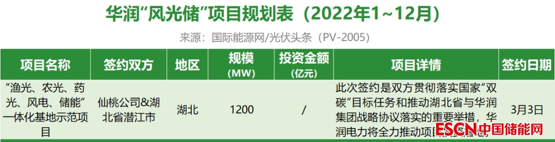 截至2022年12月31日,華潤共簽約(規(guī)劃)1個風光儲項目,項目規(guī)模1.2GW。