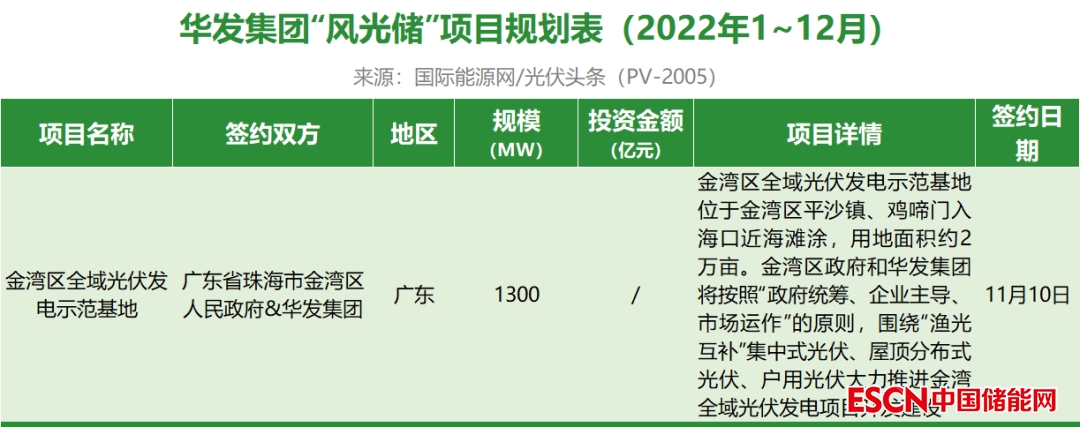 截至2022年12月31日,華發(fā)集團共簽約(規(guī)劃)1個風光儲項目,明確規(guī)模共計1.3GW。
