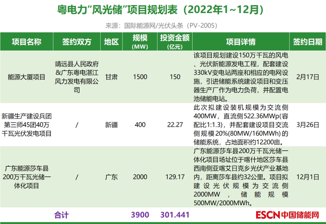 截至2022年12月31日,南方電網(wǎng)共簽約(規(guī)劃)1個風光儲項目。