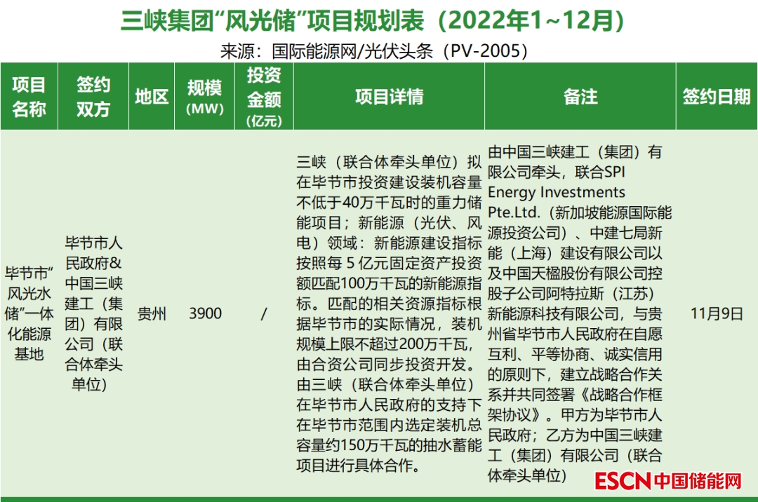 截至2022年12月31日,三峽集團共簽約(規(guī)劃)1個風光儲項目,明確規(guī)模共計3.9GW。