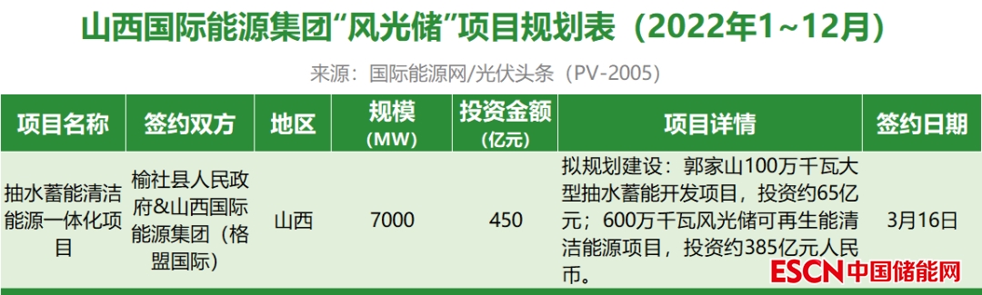 截至2022年12月31日,山西國際能源集團共簽約(規(guī)劃)1個風光儲項目,項目規(guī)模為7GW,投資金額450億元。