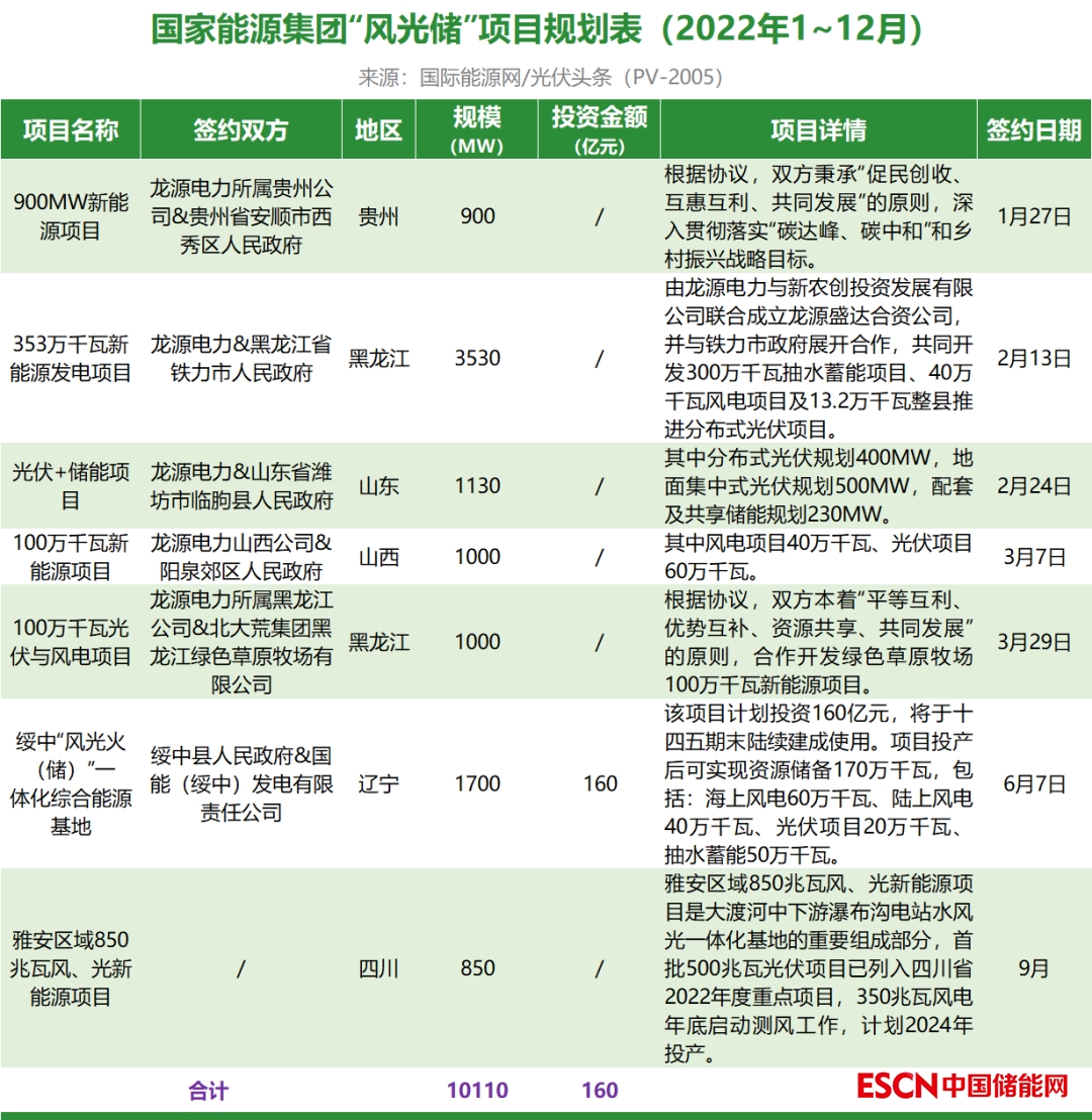 截至2022年12月31日,國家能源集團共簽約(規(guī)劃)7個風光儲項目,明確項目規(guī)模共計10.11GW,有1個項目明確投資金額160億元。