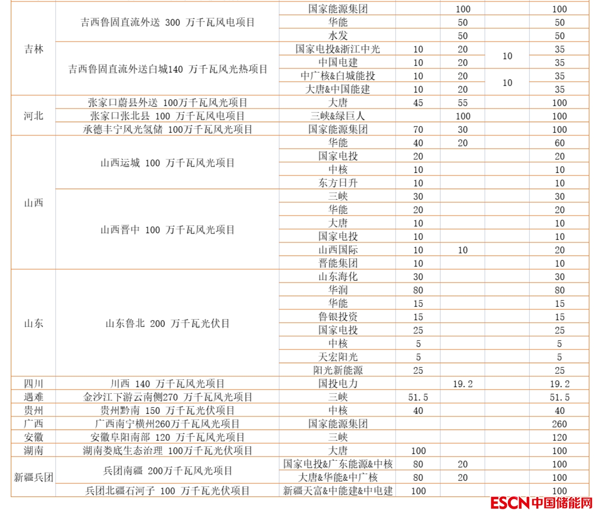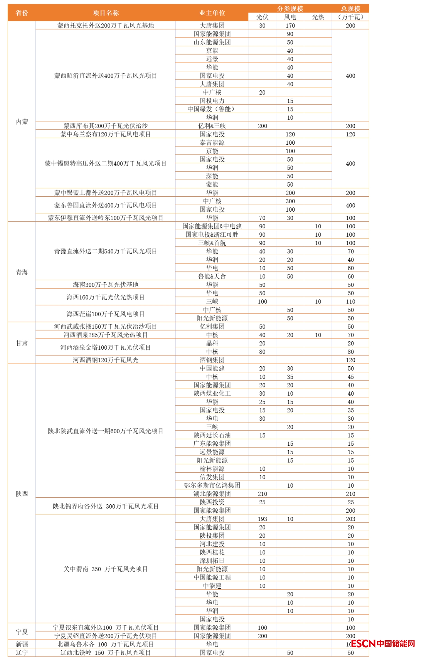 國(guó)家級(jí)大基地規(guī)劃及業(yè)主名單