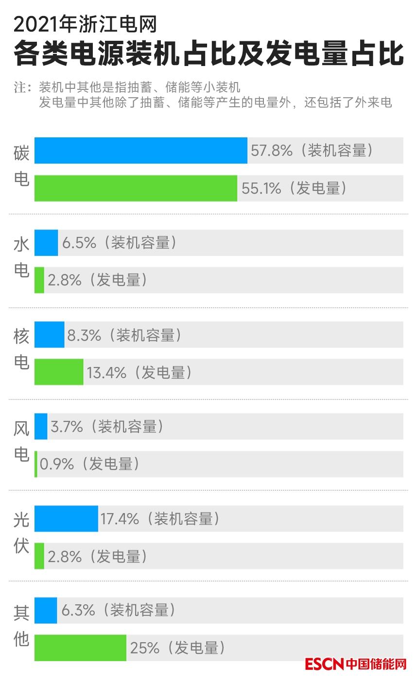 據(jù)統(tǒng)計(jì),相同裝機(jī)容量下,新能源發(fā)電年平均利用小時(shí)數(shù)遠(yuǎn)小于火電機(jī)組。以2021年為例,浙江火電平均發(fā)電利用小時(shí)4762小時(shí),風(fēng)電平均發(fā)電利用小時(shí)2165小時(shí),而光伏僅1122小時(shí)。在浙江夏季午間用電高峰時(shí)刻,光伏的可靠出力僅占裝機(jī)容量的16%,而風(fēng)電的可靠出力僅占裝機(jī)容量的6%。
