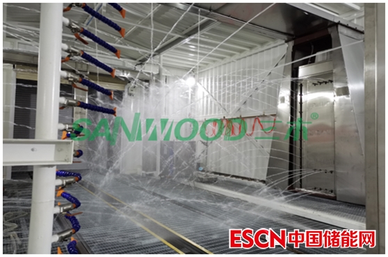頂部與左右兩側(cè)采用行車固定自動噴淋系統(tǒng),前后側(cè)采用龍門支架,噴頭可左右移動。