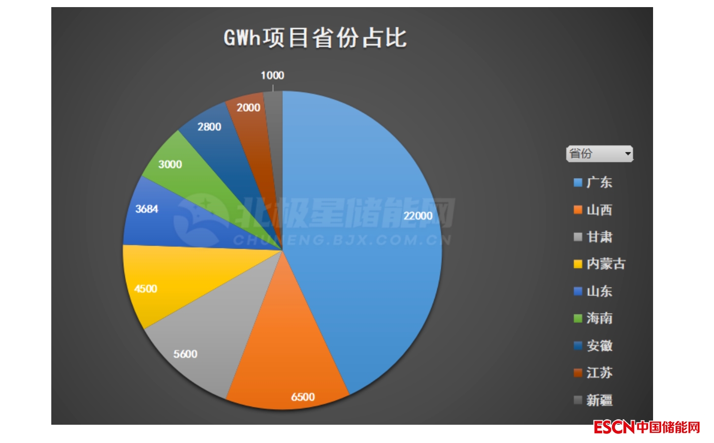從地區(qū)來看,廣東省GWh級儲能項目數(shù)量最多,建設(shè)規(guī)模最大,共有廣東惠州500MW/1000MWh獨立儲能電站項目、廣東云浮新區(qū)500MW/1000MWh獨立儲能電站項目等12個儲能項目簽約、備案等,總規(guī)模達(dá)到11GW/22GWh。其次是山西省,中核榆次500MW/1000MWh共享儲能項目、山西忻州500MW/1000MWh共享儲能電站等6個儲能項目簽約、備案,項目建設(shè)規(guī)模6.5GWh。