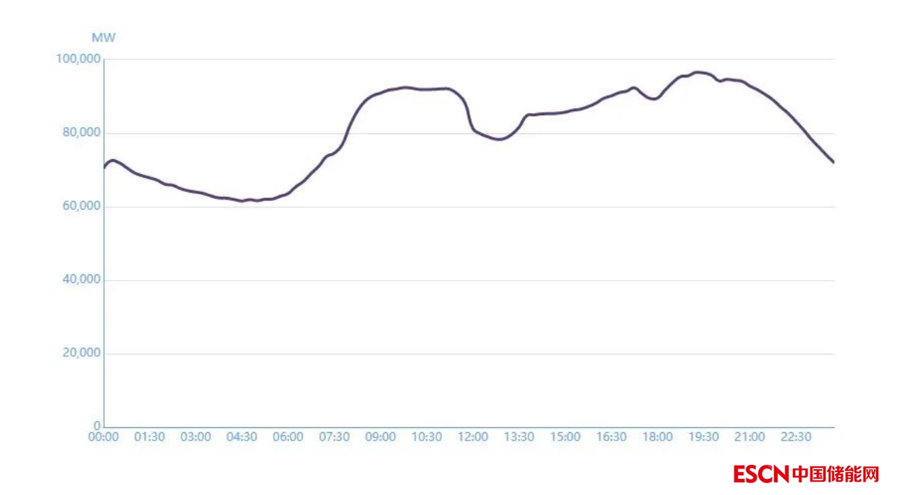 單純從用電負(fù)荷來(lái)看,中午雖然不是全天負(fù)荷最高的時(shí)段,但也不是全天負(fù)荷最低的,屬于全天負(fù)荷較高時(shí)段。下圖為某省春季某日全省用電負(fù)荷情況: