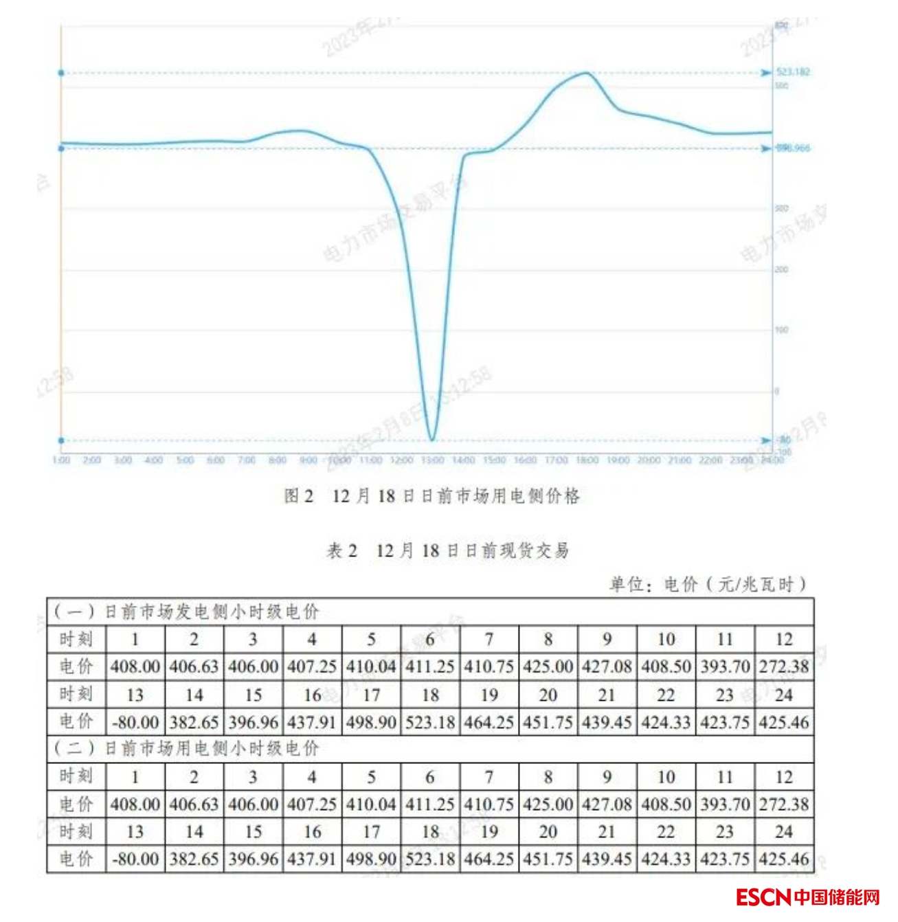 以上省(區(qū))均為光伏裝機(jī)較高的?。▍^(qū)),新疆在14:00-16:00電價(jià)低至0.1634元/千瓦時(shí),這樣的低價(jià)很難覆蓋光伏發(fā)電建設(shè)成本。此外,根據(jù)公開(kāi)信息,筆者查詢(xún)了個(gè)別省份現(xiàn)貨市場(chǎng)電價(jià),其中山東省現(xiàn)貨日前電價(jià)出現(xiàn)了中午超低價(jià)甚至達(dá)到-80元/兆瓦時(shí)的下限價(jià)格,如下圖表:
