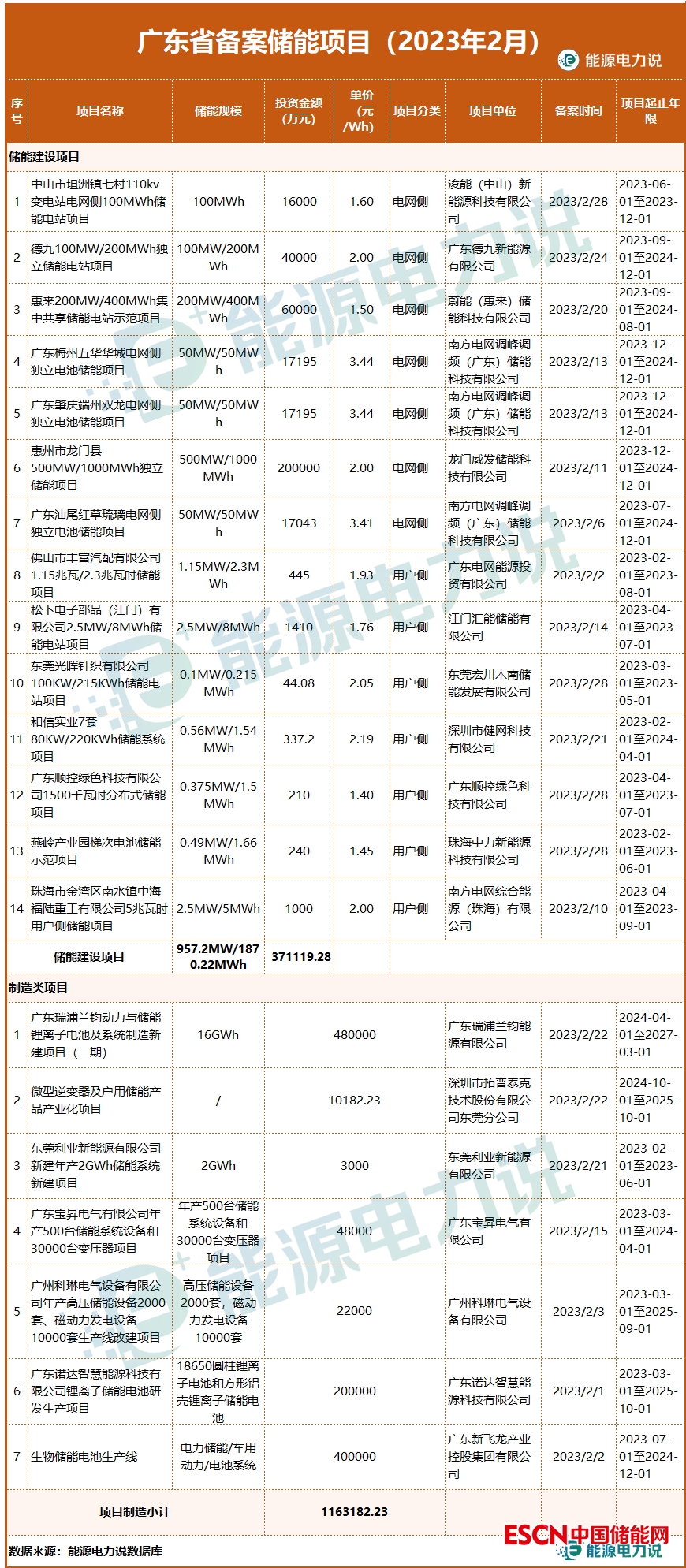 2月,廣東省備案儲能項目21個,其中儲能建設(shè)項目有14個,儲能產(chǎn)品制造類項目7個。