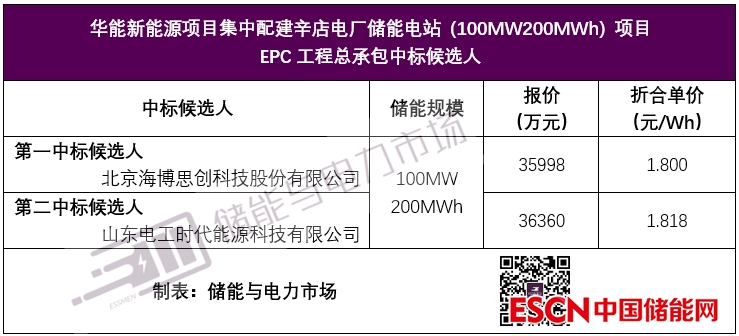 北京海博思創(chuàng)科技股份有限公司以總報(bào)價(jià)35998萬(wàn)元,折合單價(jià)1.8元/Wh,成為第一中標(biāo)候選人。