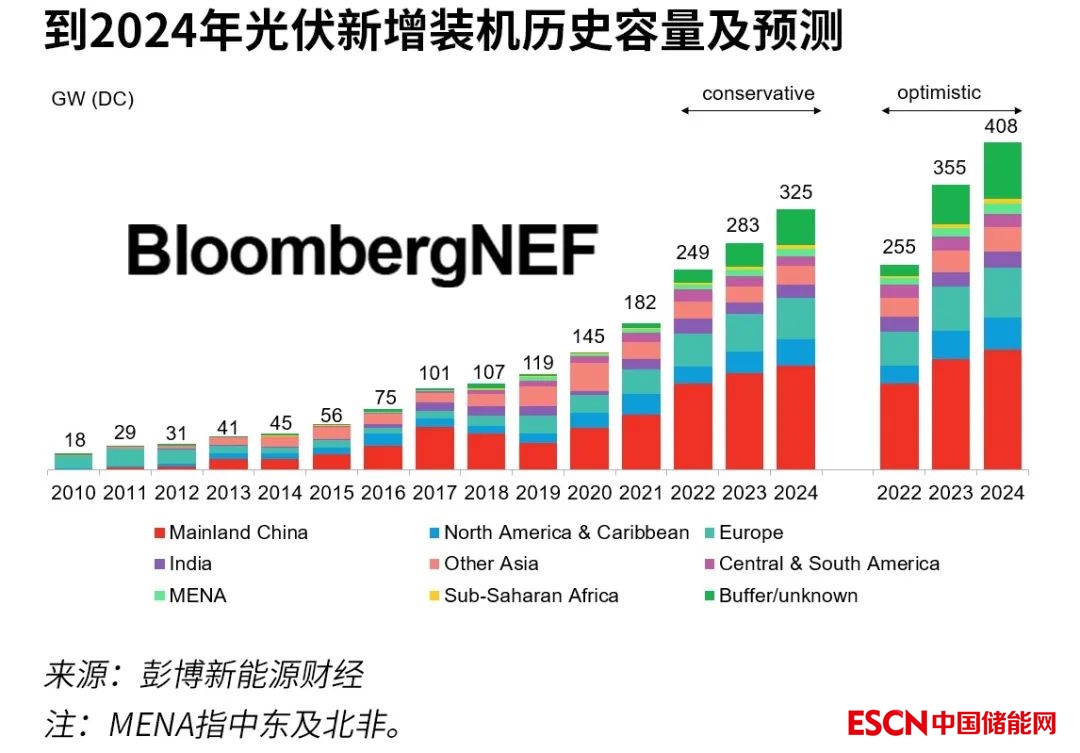 彭博新能源財經(jīng)對2023年新增光伏裝機容量的預期