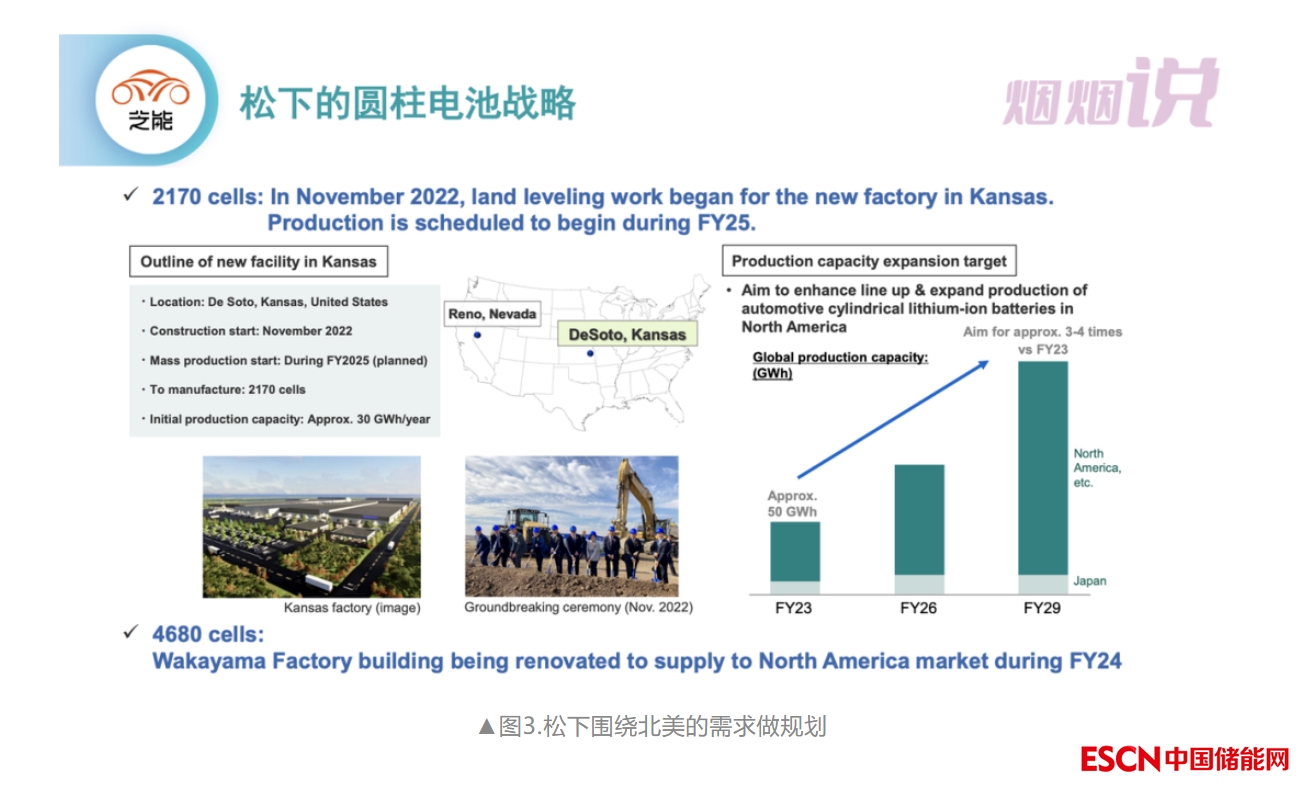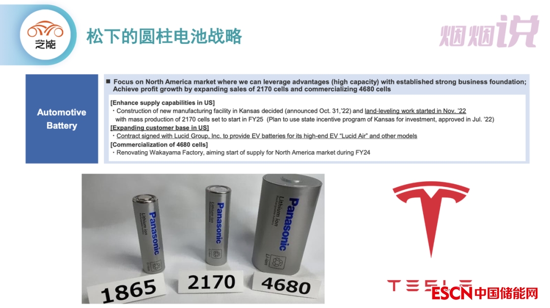 從目前來看,松下最大的希望就是日本4680大圓柱工廠預計23年供貨北美,美國堪薩斯州21700產(chǎn)線預計25年量產(chǎn)。