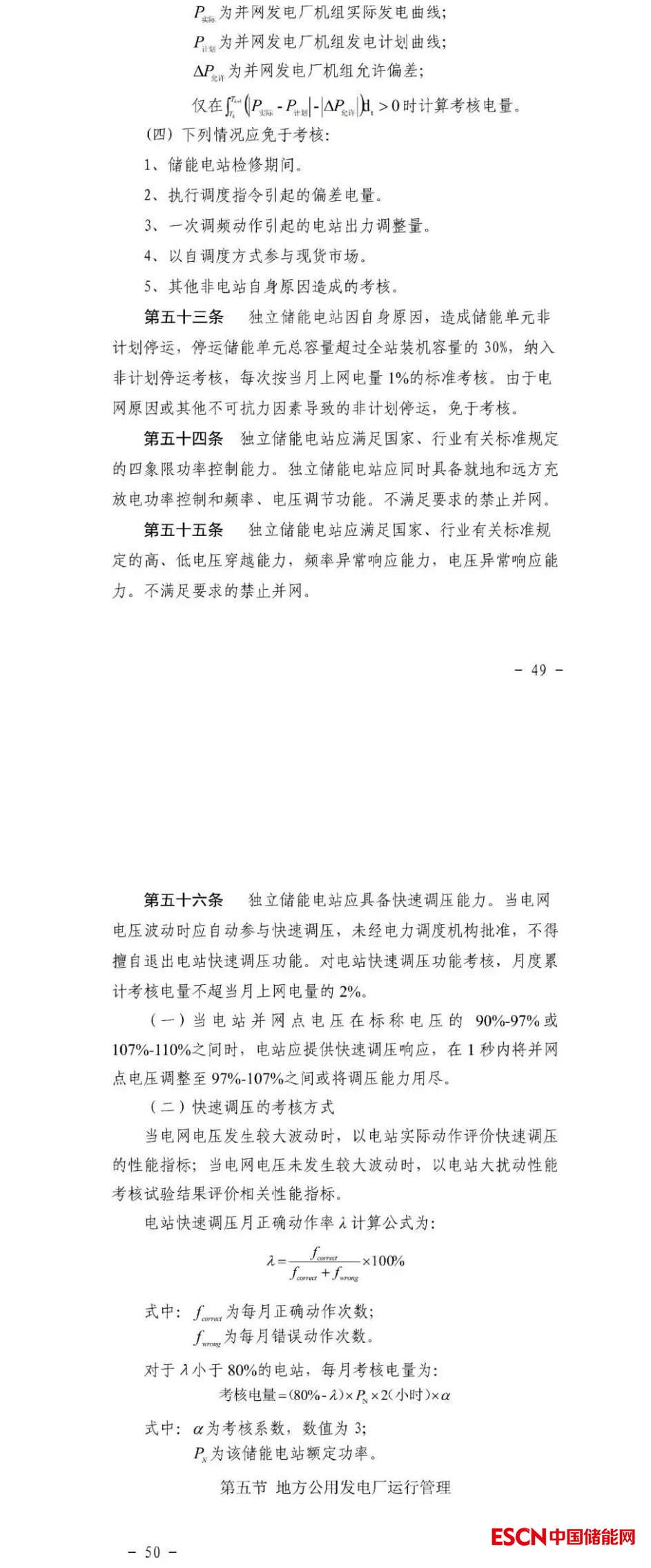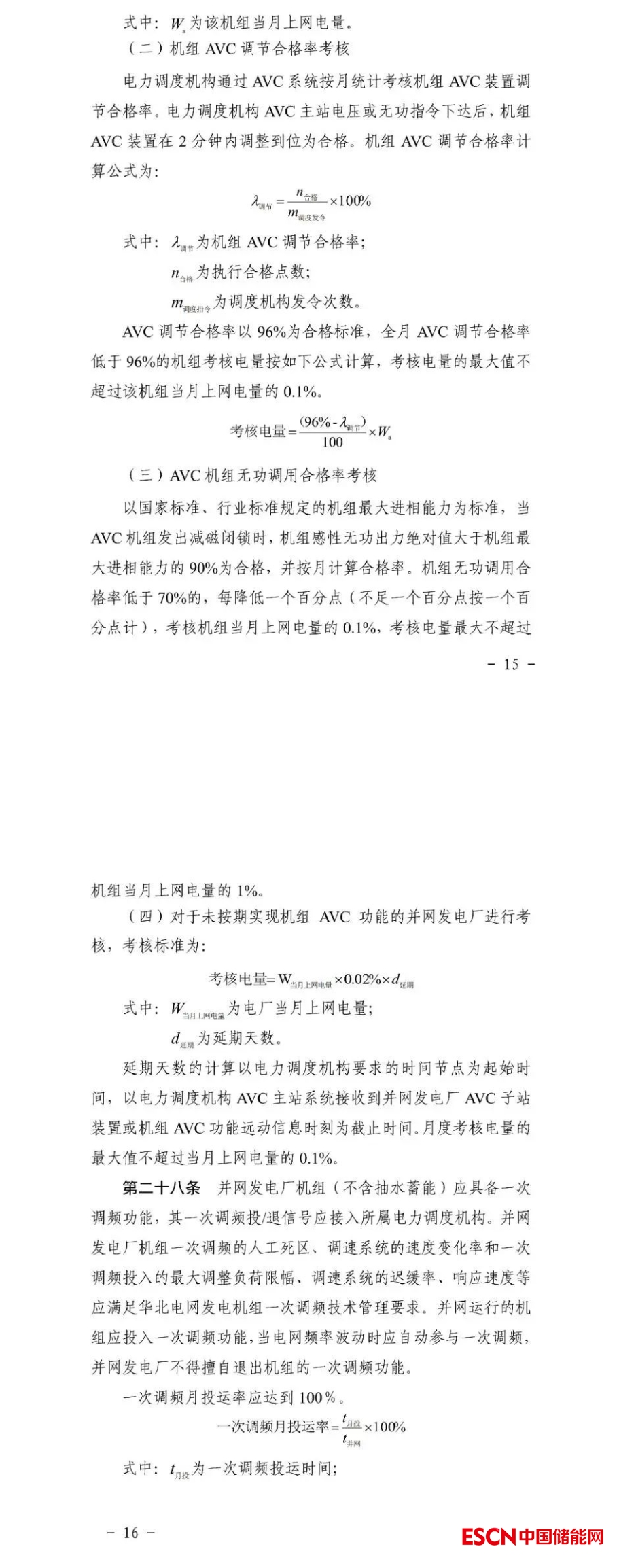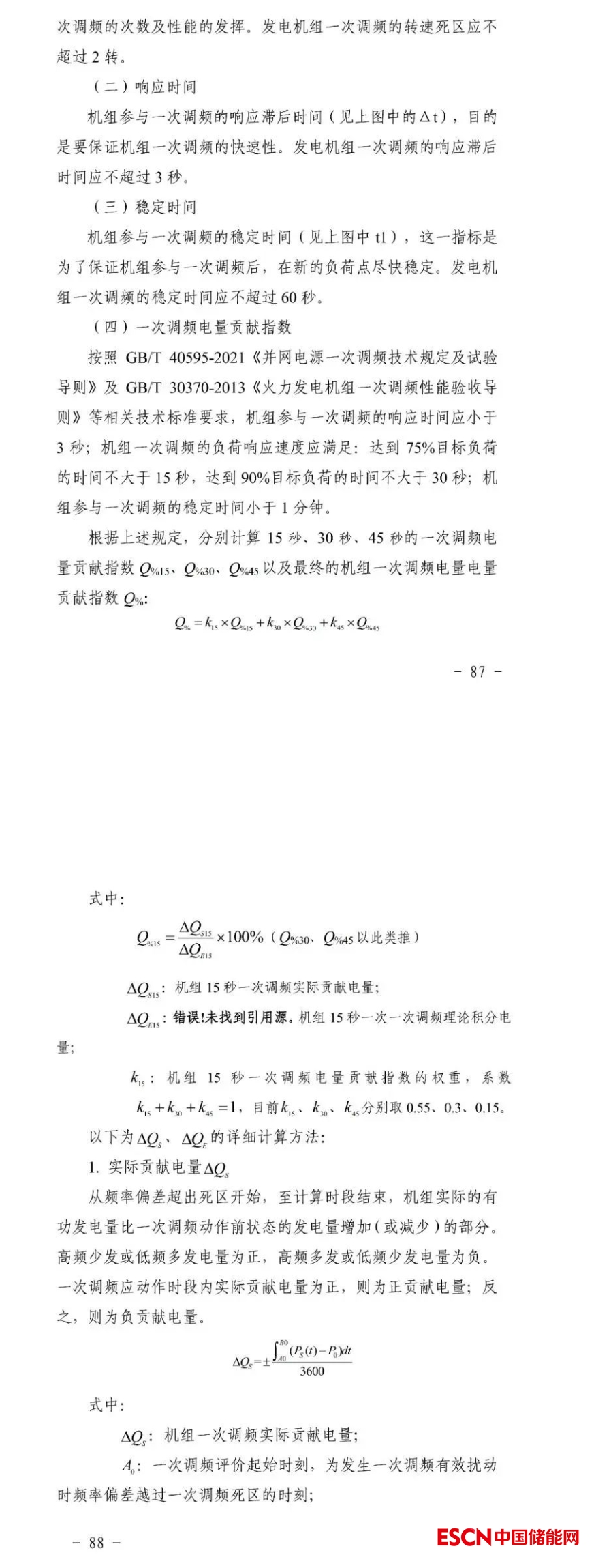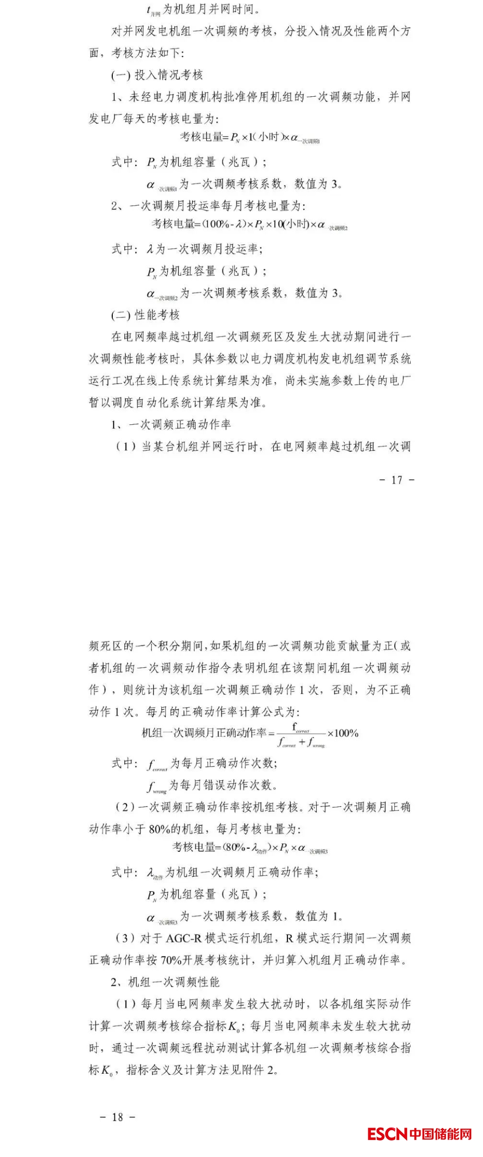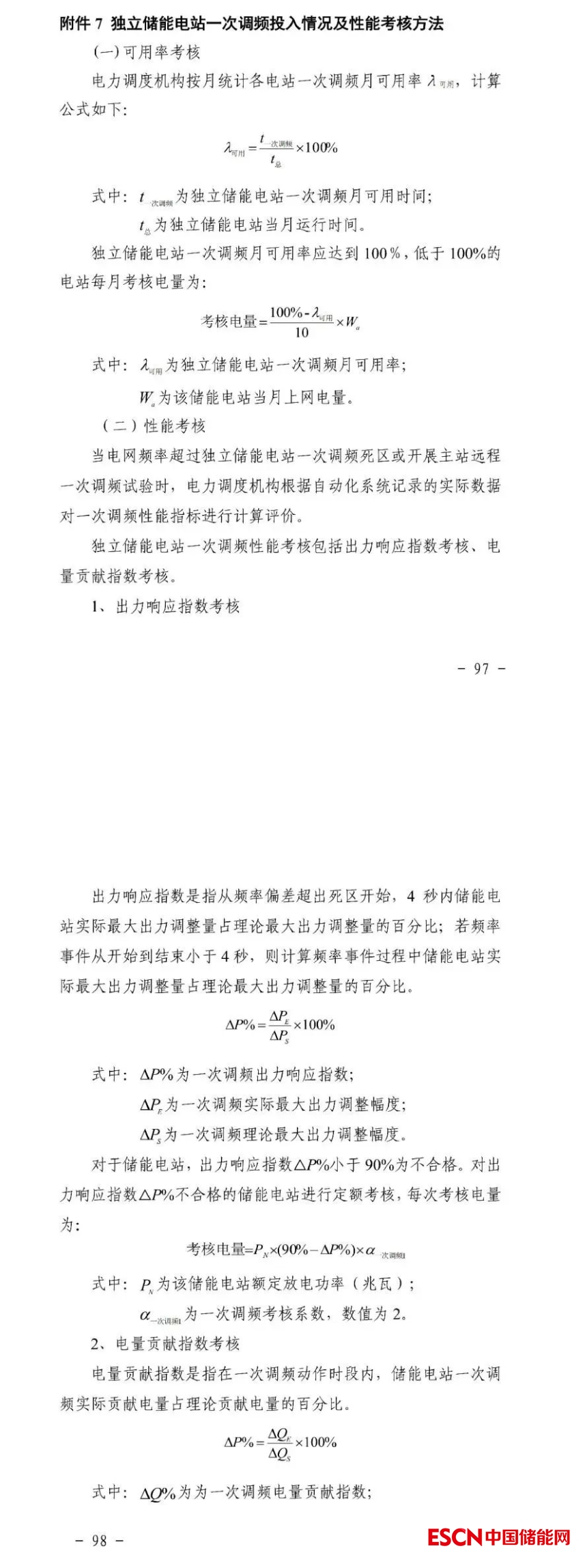 獨立儲能電站應(yīng)具備一次調(diào)頻功能,并保持一次調(diào)頻功能投入,一次調(diào)頻投/退信號應(yīng)接入電力調(diào)度機(jī)構(gòu)。獨立儲能電站一次調(diào)頻的死區(qū)、調(diào)節(jié)容量、調(diào)節(jié)速率、調(diào)節(jié)精度、響應(yīng)時間等性能指標(biāo)應(yīng)滿足國家標(biāo)準(zhǔn)要求。當(dāng)電網(wǎng)頻率波動時應(yīng)自動參與一次調(diào)頻,未經(jīng)電力調(diào)度機(jī)構(gòu)批準(zhǔn),不得擅自退出一次調(diào)頻功能。對獨立儲能電站一次調(diào)頻的可用率和性能進(jìn)行考核,月度累計考核電量不超當(dāng)月上網(wǎng)電量1%。