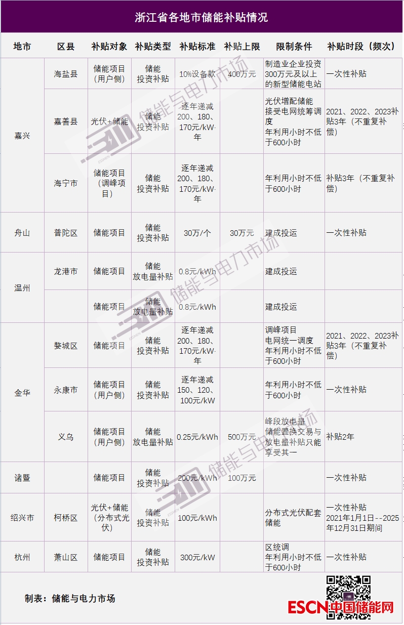 在發(fā)展目標和示范應用方面,浙江幾經(jīng)調(diào)整,最終形成了“十四五”期間建成3GW儲能的發(fā)展目標。
