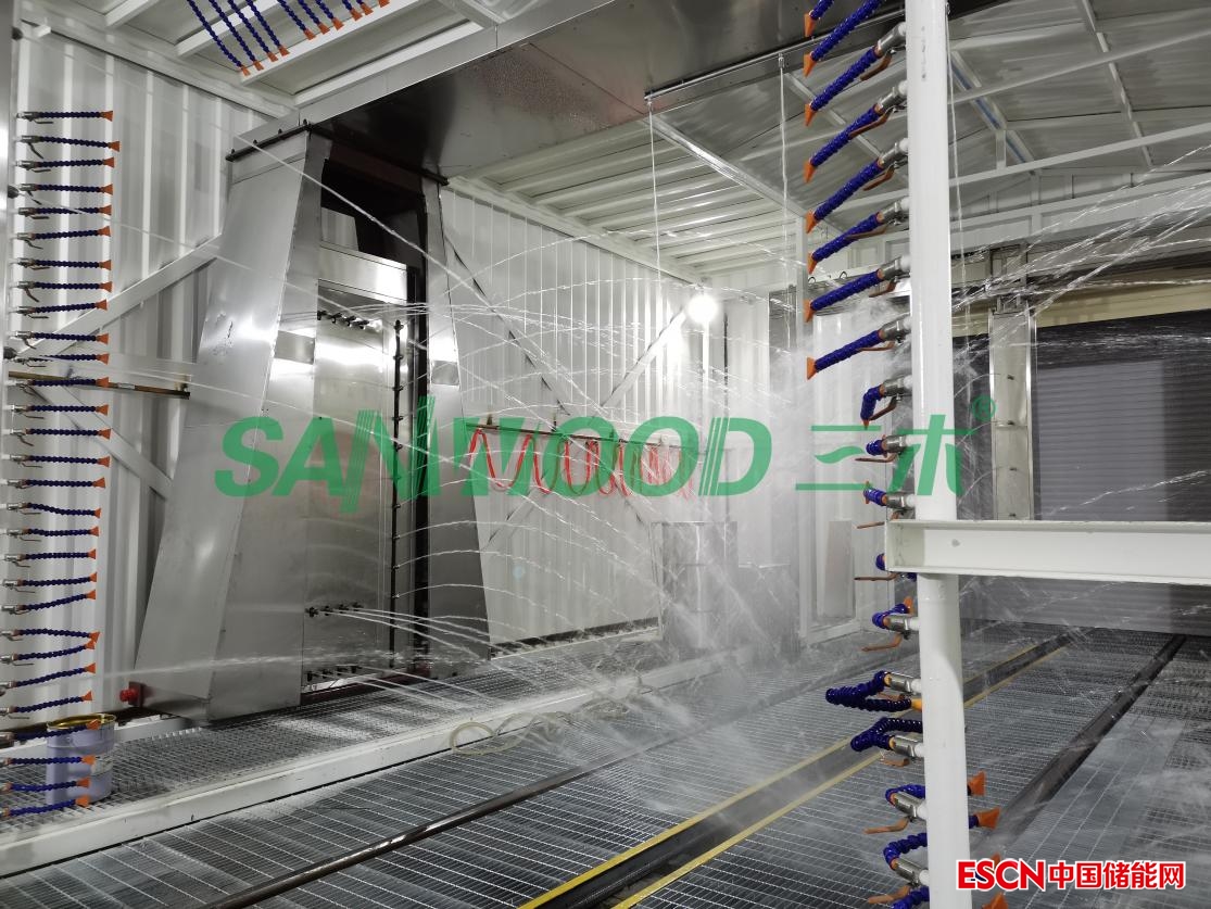 (三)、由于儲(chǔ)能集裝箱的體積龐大,品種多樣化,要想進(jìn)行全方位的淋雨測(cè)試,必須要選用適合更大尺寸的淋雨裝置。三木科技公司通過與全球集裝箱龍頭公司、全球光伏儲(chǔ)能龍頭公司合作,根據(jù)其提供的尺寸開發(fā)出較完善的淋雨測(cè)試系統(tǒng)。