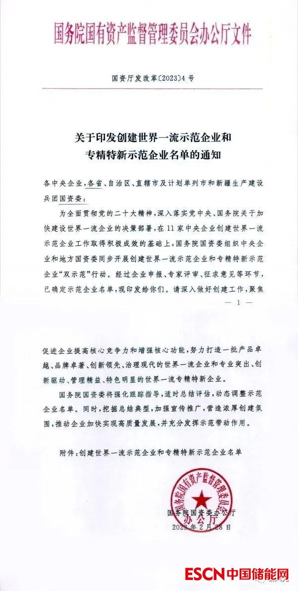 中國儲(chǔ)能網(wǎng)訊:近日,國務(wù)院國資委辦公廳發(fā)布了《關(guān)于印發(fā)創(chuàng)世界一流示范企業(yè)和專精特新示范企業(yè)名單的通知》,新風(fēng)光電子科技股份有限公司成功入選,成為全國首批200家創(chuàng)建世界一流專精特新企業(yè)之一,也是山東省三家入選企業(yè)之一。