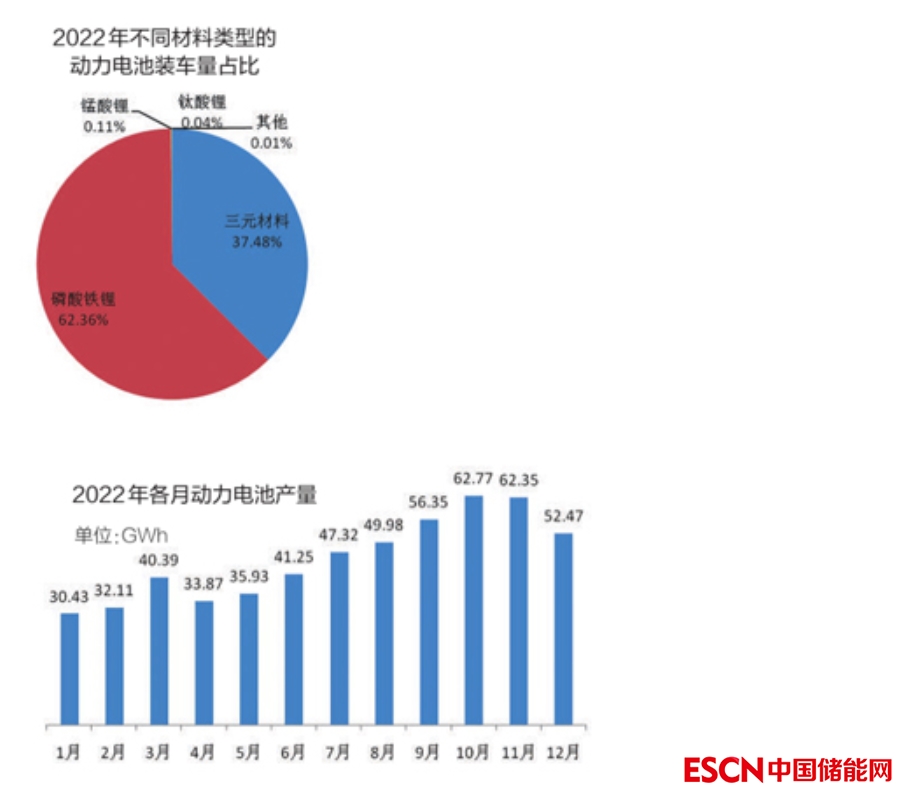 2022年不同材料類型動(dòng)力電池產(chǎn)銷量及裝車量 單位:MWh