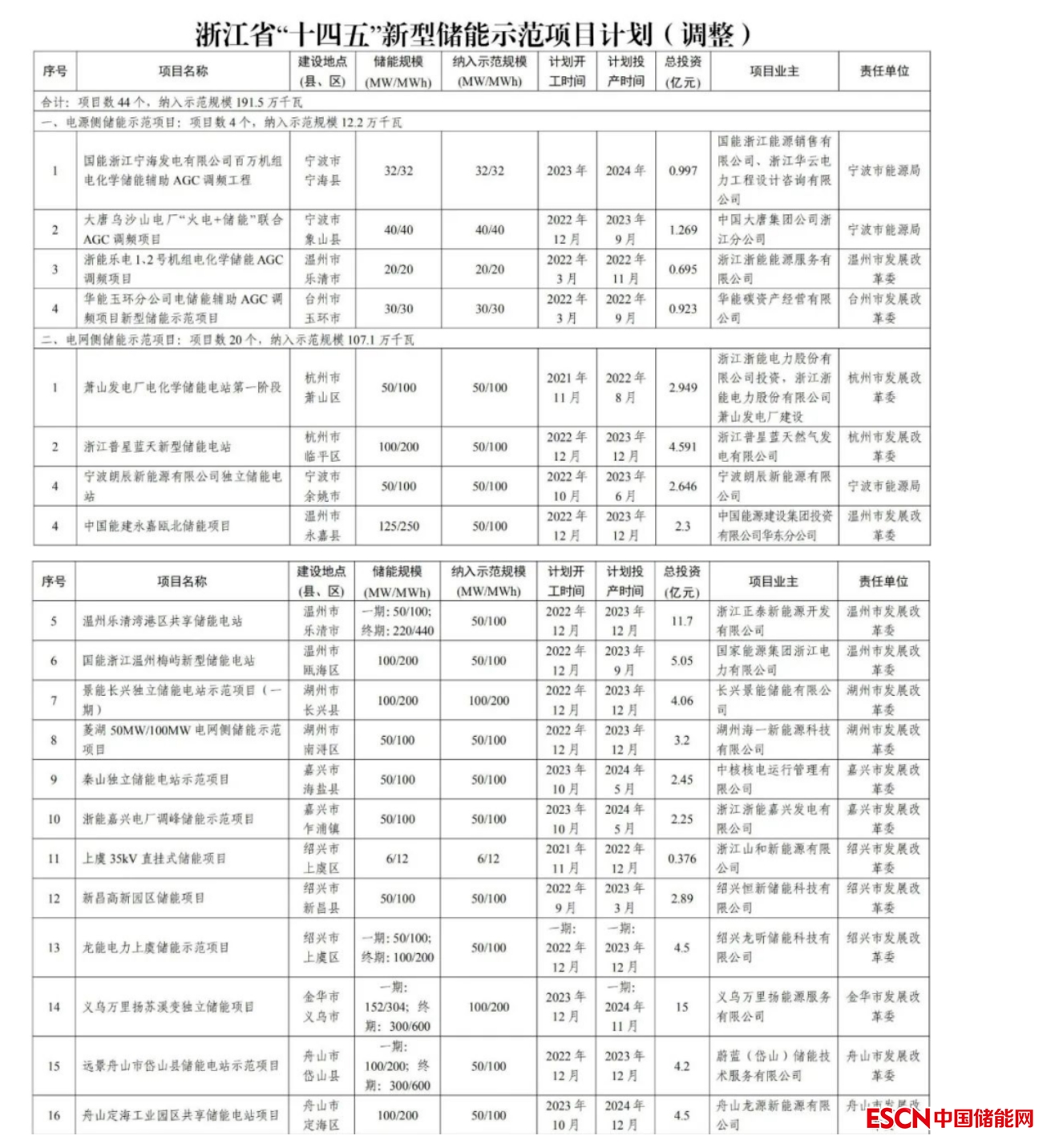 其中山東省2021年新型儲能項目數(shù)量共7個,合計儲能規(guī)模達到520MW/1041MWh,2022年相較2021年示范項目數(shù)量增加22個,規(guī)模增加2583MW。2023年2月24日,浙江省發(fā)改委、能源局發(fā)布關于印發(fā)《浙江省“十四五”新型儲能示范項目計劃(調整)》的通知,對《浙江省“十四五”第一批新型儲能示范項目》做出調整,共新增13個示范項目,減少3個示范項目,調整后新增示范規(guī)模共計514.4MW/2776.8MWh。目前浙江省新型儲能示范項目共44個,納入示范項目規(guī)模共計1915MW/6429.2MWh。