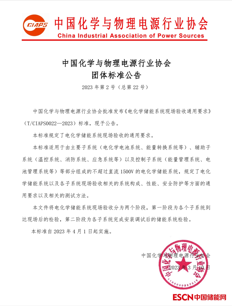 中國(guó)儲(chǔ)能網(wǎng)訊:3月23日,中國(guó)化學(xué)與物理電源行業(yè)協(xié)會(huì)團(tuán)體標(biāo)準(zhǔn)(以下簡(jiǎn)稱“團(tuán)標(biāo)”)《電化學(xué)儲(chǔ)能系統(tǒng)現(xiàn)場(chǎng)驗(yàn)收通用要求》(T/CIAPS0022—2023)在蘇州隆重舉行發(fā)布儀式,標(biāo)準(zhǔn)定于2023年4月1日起實(shí)施。作為重要的參編單位和儲(chǔ)能行業(yè)領(lǐng)軍企業(yè),科華數(shù)能應(yīng)邀出席發(fā)布儀式。