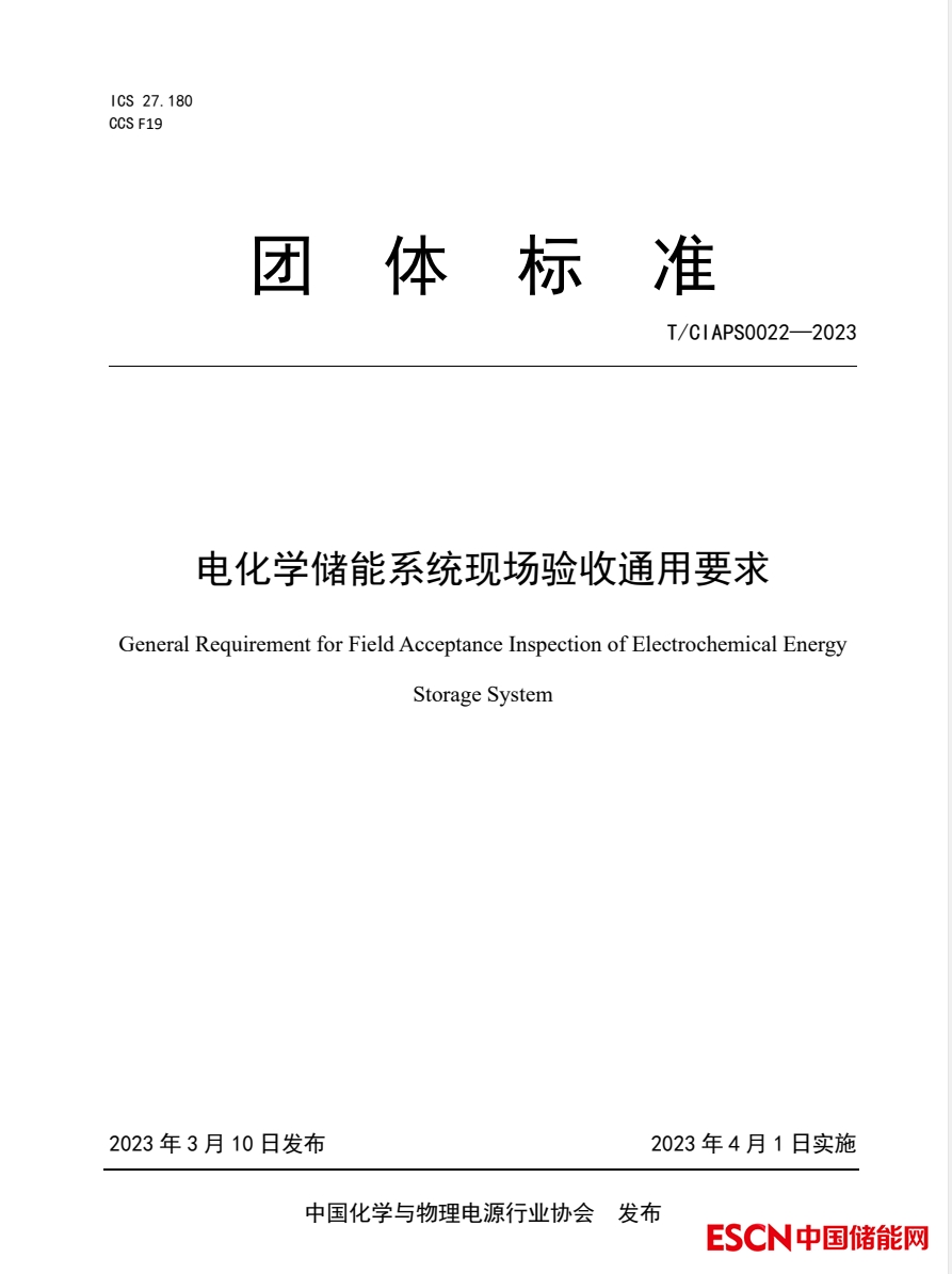 此次團(tuán)體標(biāo)準(zhǔn)規(guī)定了電化學(xué)儲(chǔ)能系統(tǒng)現(xiàn)場(chǎng)驗(yàn)收的通用要求,并從“范圍、規(guī)范性引用文件、術(shù)語(yǔ)和定義、環(huán)境條件、電化學(xué)儲(chǔ)能系統(tǒng)現(xiàn)場(chǎng)驗(yàn)收要求、電化學(xué)儲(chǔ)能系統(tǒng)現(xiàn)場(chǎng)驗(yàn)收檢驗(yàn)方法”六個(gè)維度進(jìn)行規(guī)范說(shuō)明。