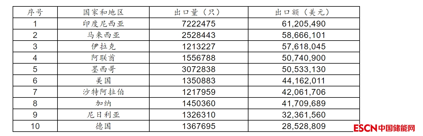 2、2022起動(dòng)用鉛酸蓄電池出口前十大目的地(按出口額排序)