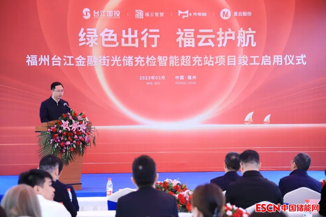 據(jù)介紹,臺(tái)江金融街光儲(chǔ)充檢智能超充站由福州市福云智慧新能源科技有限公司建設(shè),該公司系福州臺(tái)江高新技術(shù)產(chǎn)業(yè)區(qū)投資開發(fā)有限公司(注:該公司為臺(tái)江區(qū)國(guó)投集團(tuán)下屬企業(yè))與福建星云東能投資合伙企業(yè)(有限合伙)(注:該企業(yè)為星云股份參股公司星云智慧能源旗下企業(yè))聯(lián)手創(chuàng)建,星云股份在站點(diǎn)建設(shè)中提供了儲(chǔ)能、直流充電、電池檢測(cè)等關(guān)鍵技術(shù)支持。致公黨福建省委會(huì)專職副主委吳棉國(guó),福建省工業(yè)信息化廳裝備工業(yè)處處長(zhǎng)楊鵬飛,臺(tái)江區(qū)委常委、副區(qū)長(zhǎng)鄭寅球,臺(tái)江區(qū)自然資源和規(guī)劃局局長(zhǎng)周雯,臺(tái)江區(qū)國(guó)有資產(chǎn)投資集團(tuán)有限公司董事長(zhǎng)陳杰,臺(tái)江國(guó)投專職副書記、副總經(jīng)理葉小斌,福建時(shí)代星云科技有限公司董事長(zhǎng)黃世霖,福建星云電子股份有限公司總裁劉作斌,福建星云東能能源科技有限責(zé)任公司總經(jīng)理林先洛,福州翔業(yè)投資有限公司總經(jīng)理劉范疇,廈門海華電力科技有限公司董事長(zhǎng)兼總經(jīng)理蔣朝陽(yáng),長(zhǎng)樂區(qū)產(chǎn)業(yè)投資發(fā)展集團(tuán)有限公司董事長(zhǎng)鄭曉瑱,中國(guó)石油天然氣股份有限公司天然氣銷售福建分公司黨委副書記鄧翔,以及中國(guó)銀行臺(tái)江支行、長(zhǎng)樂產(chǎn)投集團(tuán)、福州翔業(yè)投資、廈門海華電力、中國(guó)石油等合作單位的領(lǐng)導(dǎo)和嘉賓出席了竣工啟用儀式。