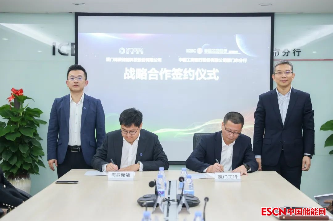 海辰儲(chǔ)能聯(lián)合創(chuàng)始人、總經(jīng)理王鵬程,工商銀行廈門(mén)市分行黨委書(shū)記、行長(zhǎng)張江山共同見(jiàn)證,海辰儲(chǔ)能董事、副總經(jīng)理龐文杰、工商銀行廈門(mén)市分行副行長(zhǎng)陳大文代表雙方簽約。