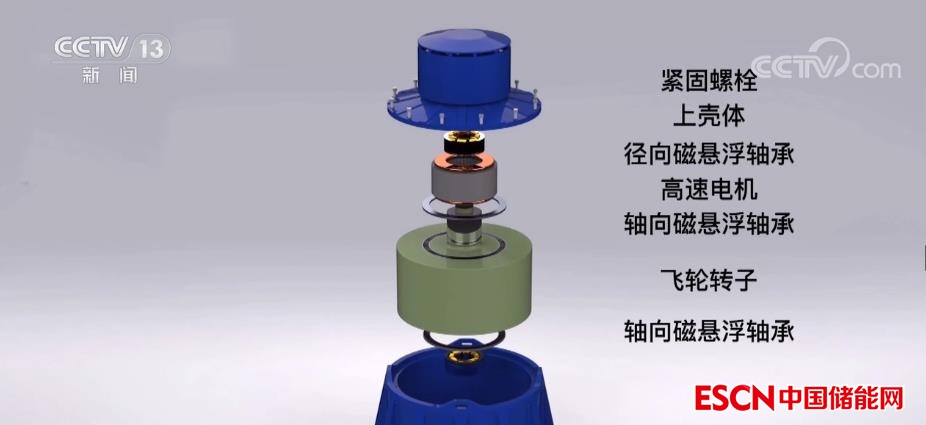 畫(huà)面中的就是飛輪裝置,單個(gè)容量為500千瓦,主要利用真空磁懸浮條件下飛輪轉(zhuǎn)子的高速旋轉(zhuǎn)來(lái)實(shí)現(xiàn)電能與動(dòng)能之間的轉(zhuǎn)換。